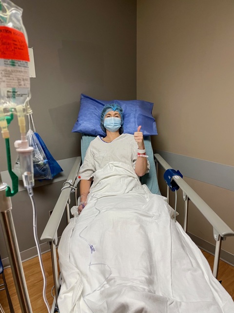 The short five minute drive to the hospital – a route I’ve driven hundreds of times – felt so different. It felt so short, yet so long. It all blurred together, yet I saw every detail we passed. As we walked into the hospital (my dad was able to be in the waiting room, my mom being allowed in my pre-op room after I was prepped for surgery) I felt peace and strength. Lots of deeps breaths. When the nurse called my name I gave my dad a hug and off I went. Vitals, IV start, talk with surgeon, brief from the anesthesiologist, telling my mom I loved her and then being wheeled on a bed down what felt like the longest hallway I’ve ever journeyed.